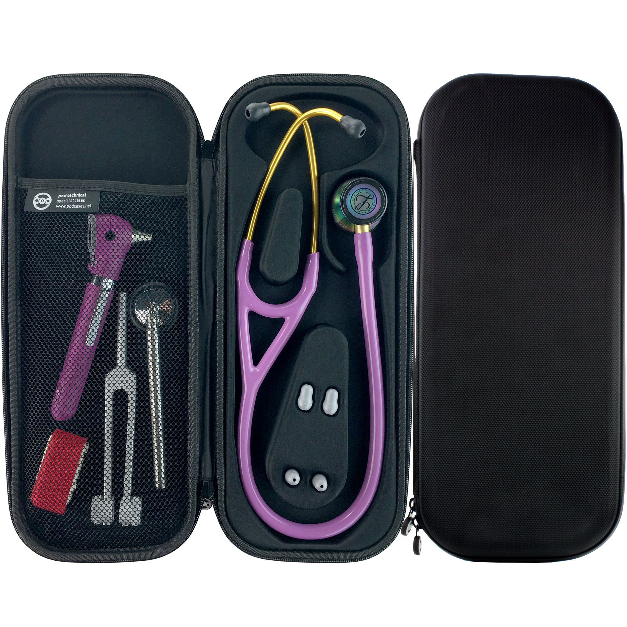 Unlike generic cases, the cardiopod has been designed specifically for sensitive Cardiology grade dual lumen stethoscopes. Cardiology binaurals feature two tubes in one which if coiled for storage can become damaged. Our design holds the scope as the manufacturer intended, secured in place by a preformed interior. Pod Technical cases represent the very best quality available - many of our competitors simply offer boxes that do not hold the scope in position.